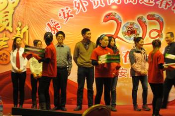 海數(shù)公司2012年度優(yōu)秀員工在領(lǐng)獎臺上