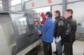 2013年2月28日,俄羅斯客商一行4人來(lái)公司驗(yàn)收春節(jié)前已訂購(gòu)的數(shù)控管螺紋車床??蜕探?jīng)過(guò)對(duì)產(chǎn)品仔細(xì)查看、開(kāi)機(jī)運(yùn)行、親自操作和樣件加工等環(huán)節(jié),順利通過(guò)了驗(yàn)收。對(duì)產(chǎn)品整體情況表示滿意,并在公司進(jìn)行了編程、操作和樣件加工的技術(shù)培訓(xùn)。